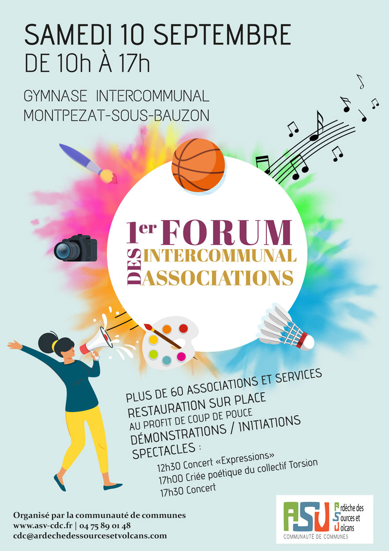 Le 1er Forum Intercommunal des Associations aura lieu le Samedi 10 septembre de 10h à 17h au gymnase intercommunal de Montpezat-sous-Bauzon.