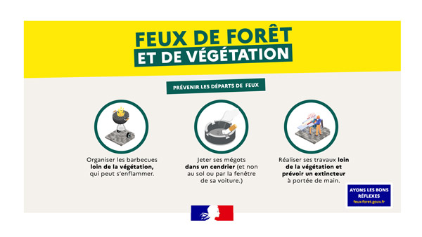 9 feux de forêt sur 10 dix sont d’origine humaine et pourraient être évités en adoptant les bons réflexes :