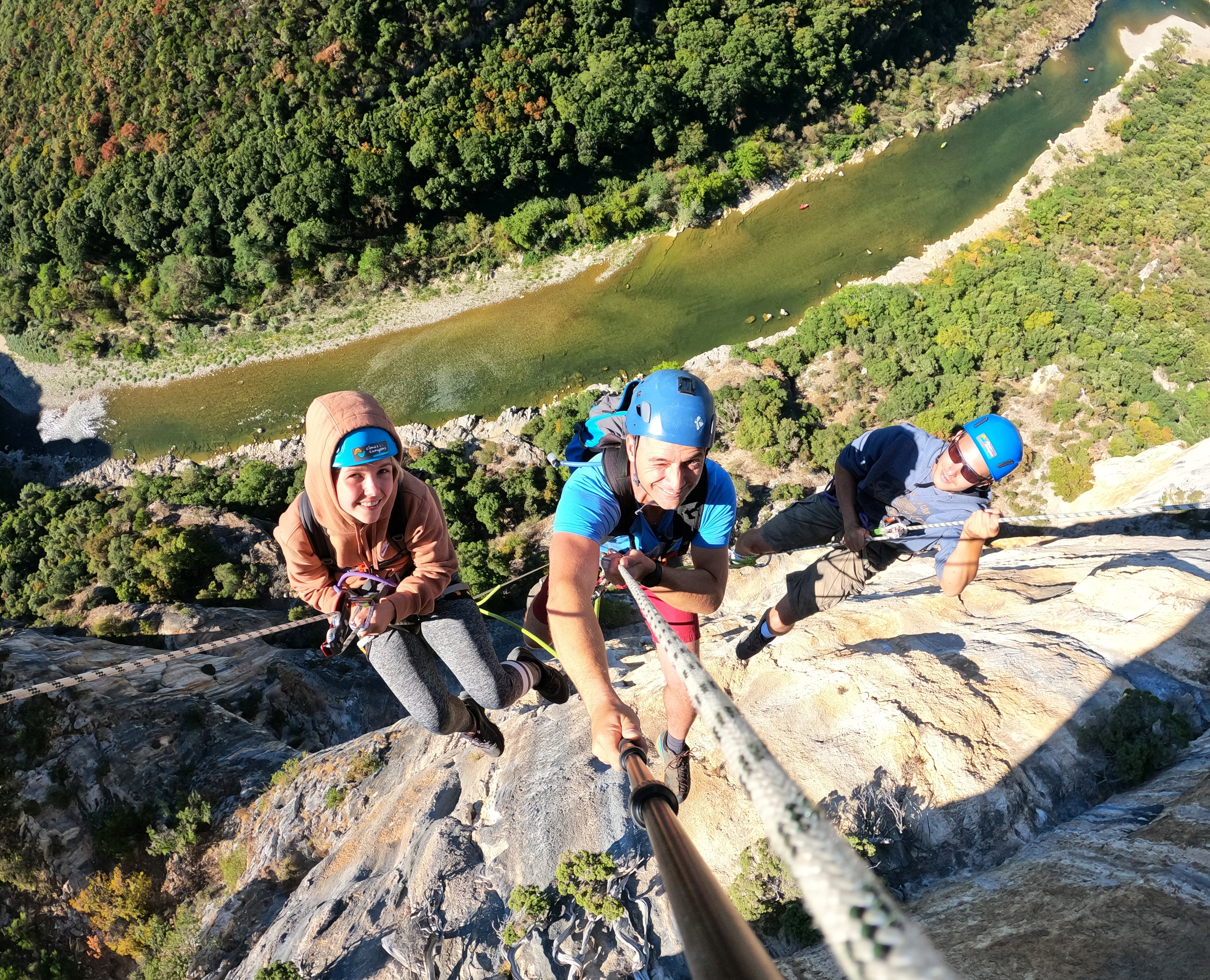 Julien moniteur spécialisé en escalade, canyoning, via ferrata, via corda, rappel géant (oui 180m) et dans l’accompagnement de personnes en situation de handicap.