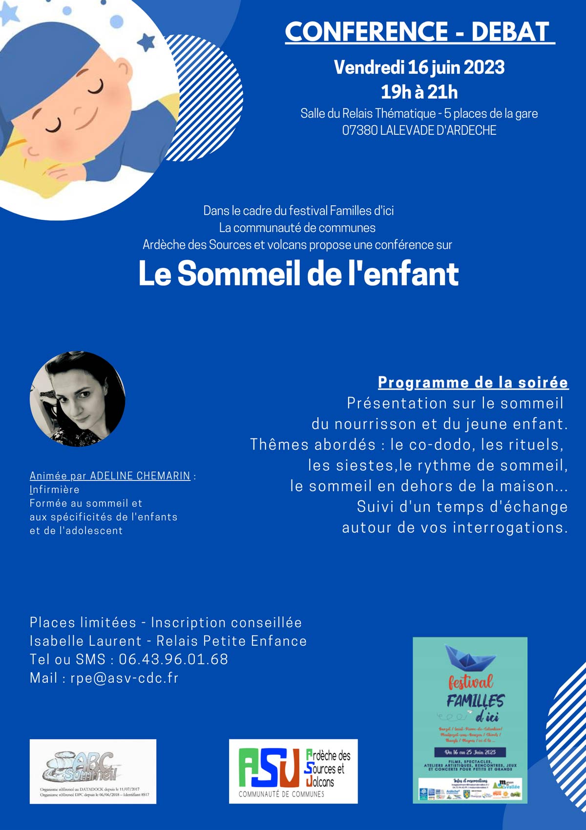 Conférence – Débat « Le sommeil de l’enfant » vendredi 16 juin de 19h à 21h