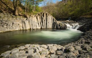 Le site du Verdier situé au cœur du village de Burzet, ces coulées basaltiques résulte du Ray-Pic, l’une des coulées de basalte de France les plus riches en nodules de péridotite. Très beau point de vue du Pont.