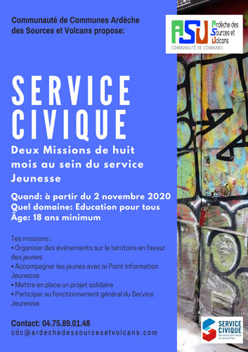 La communauté de communes Ardèche des Sources et Volcans vous propose deux missions d’une