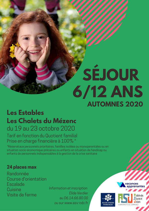 Le dispositif « colo apprenante » vise à répondre aux attentes des familles et des enfants en matière de loisirs. La communauté de Communes Ardèche des Sources et Volcans a engagé des démarches auprès des services de l’état pour que 24 enfants du territoire puissent en bénéficier. Le principe ? une colo de cinq jours aux Estables, encadrée par les animateurs du centre de loisirs à destination d’enfants âgés de 6 à 12 ans.