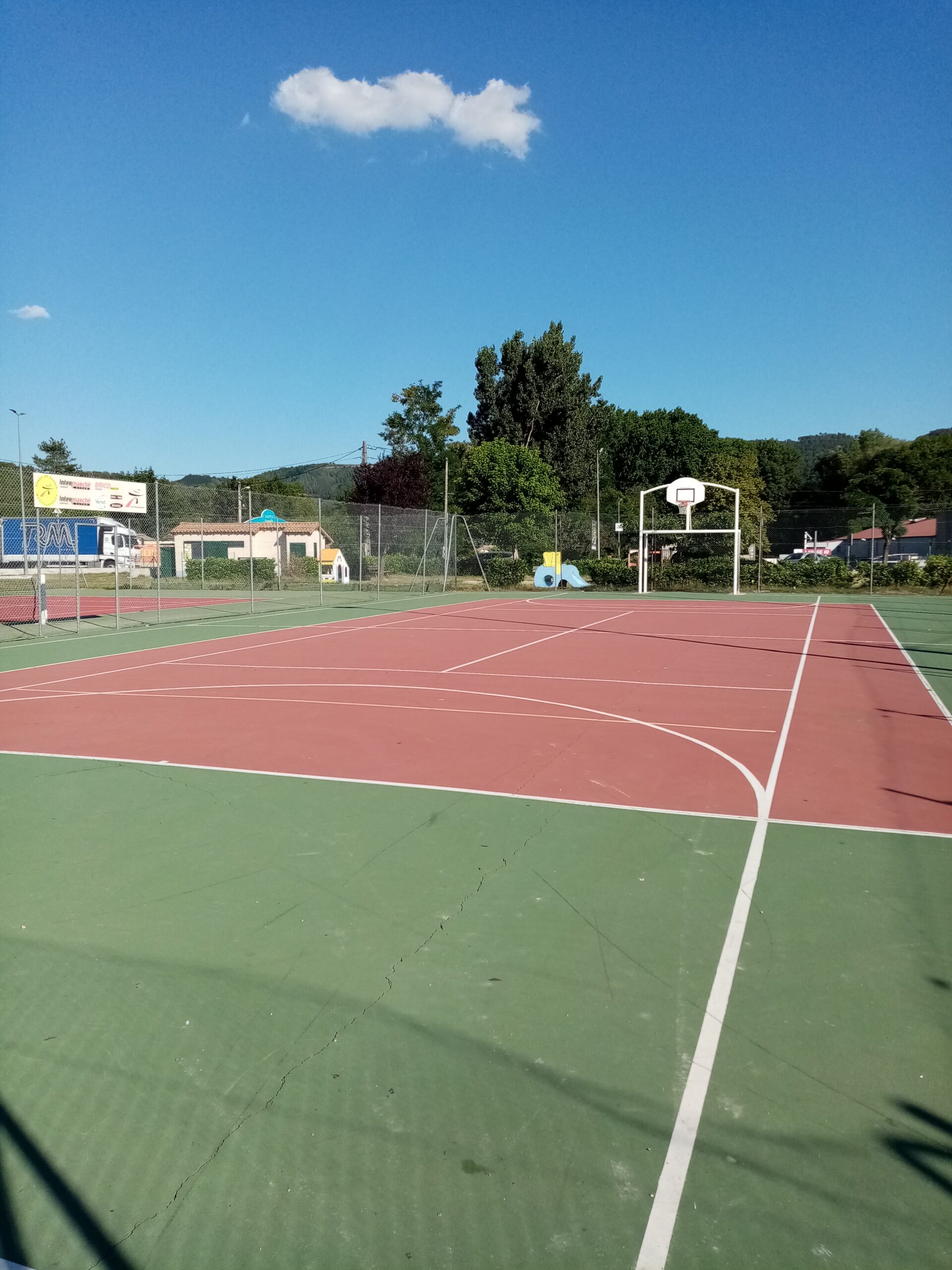 Terrain multisports : terrain de tennis (filet à récupérer en mairie), cages de foot, de handball, paniers de baskets...