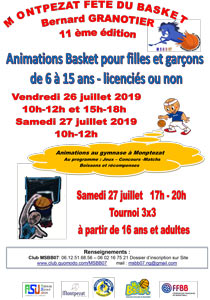 Samedi 27 juillet : 17h-20h Tournois 3×3 à partir de 16 ans et adultes