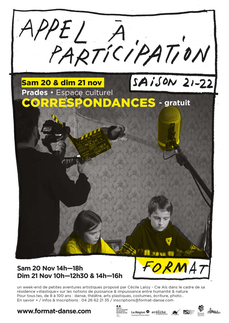 Dans le cadre de la Convention d’Éducation aux Arts et à la Culture portée par la Communauté de communes Ardèche des Sources et Volcans, Format lance un appel à participation pour « Correspondances », un parcours d’ateliers artistiques adressé à un groupe de 10 personnes de tout âge, à partir de 8 ans.