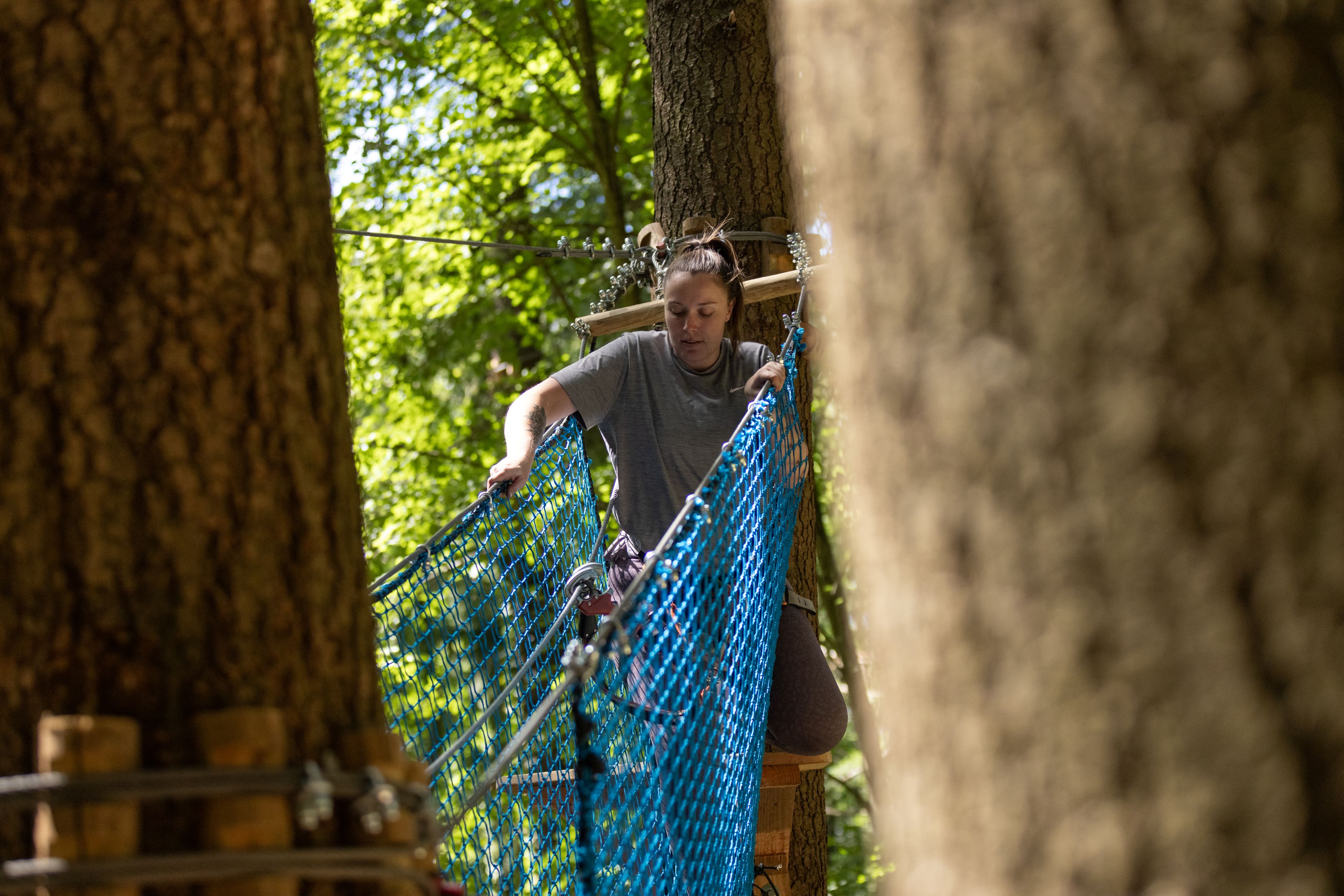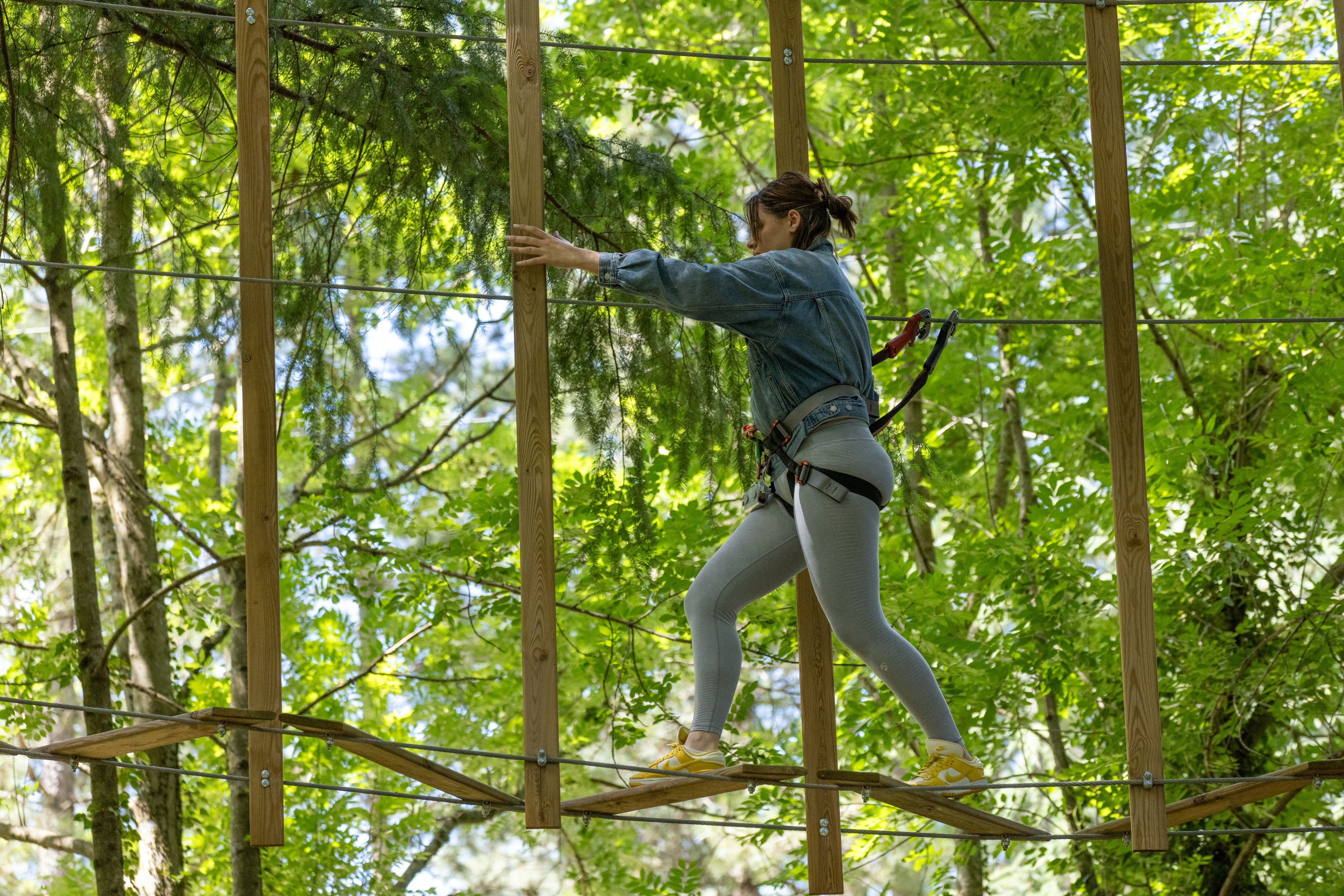 À Accroche toi aux branches Jaujac, vous évoluerez d’arbre en arbre, en toute sécurité ! Parcours dès 2 ans et en autonomie au cours d’un trekking aérien.