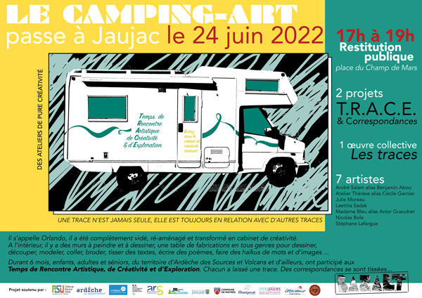 Le Camping-art passe à Jaujac pour une restitution publique sur la place du Champ de Mars.