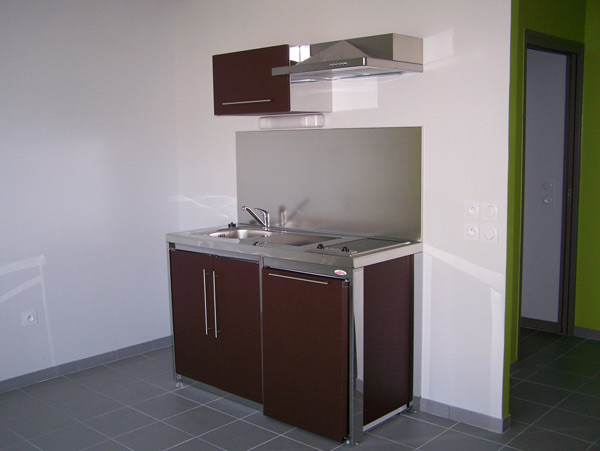 - un séjour avec kitchennette (évier, réfrigérateur, plaque de cuisson, hotte aspirante)