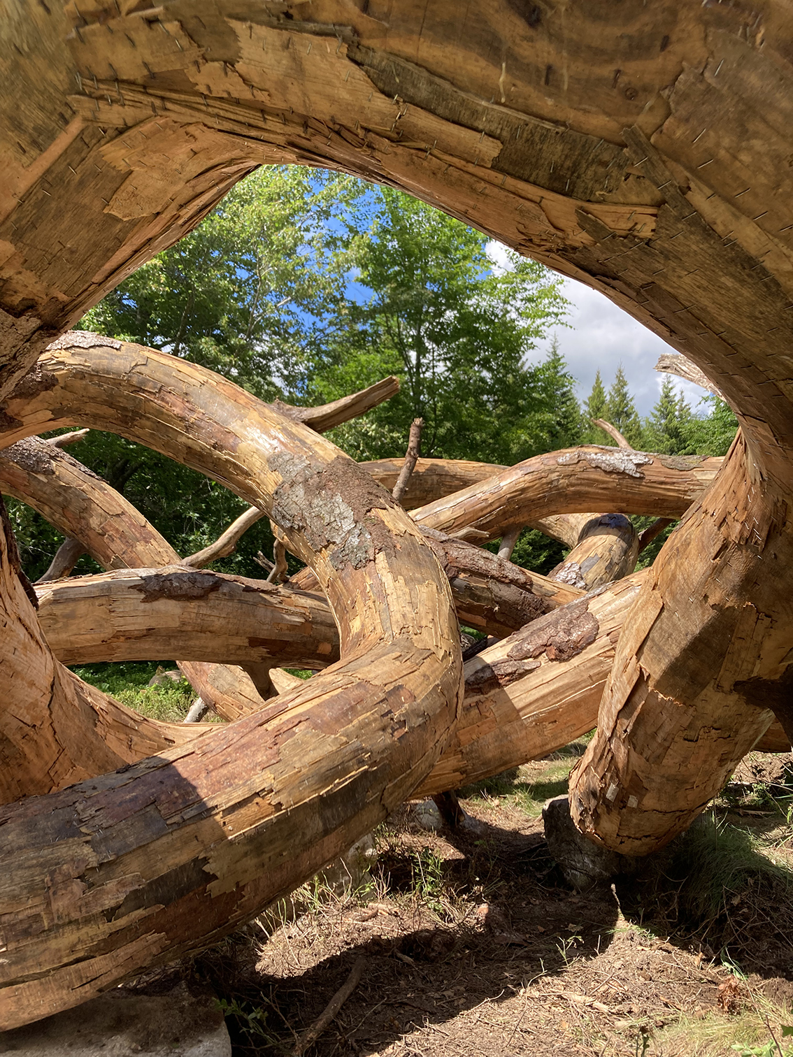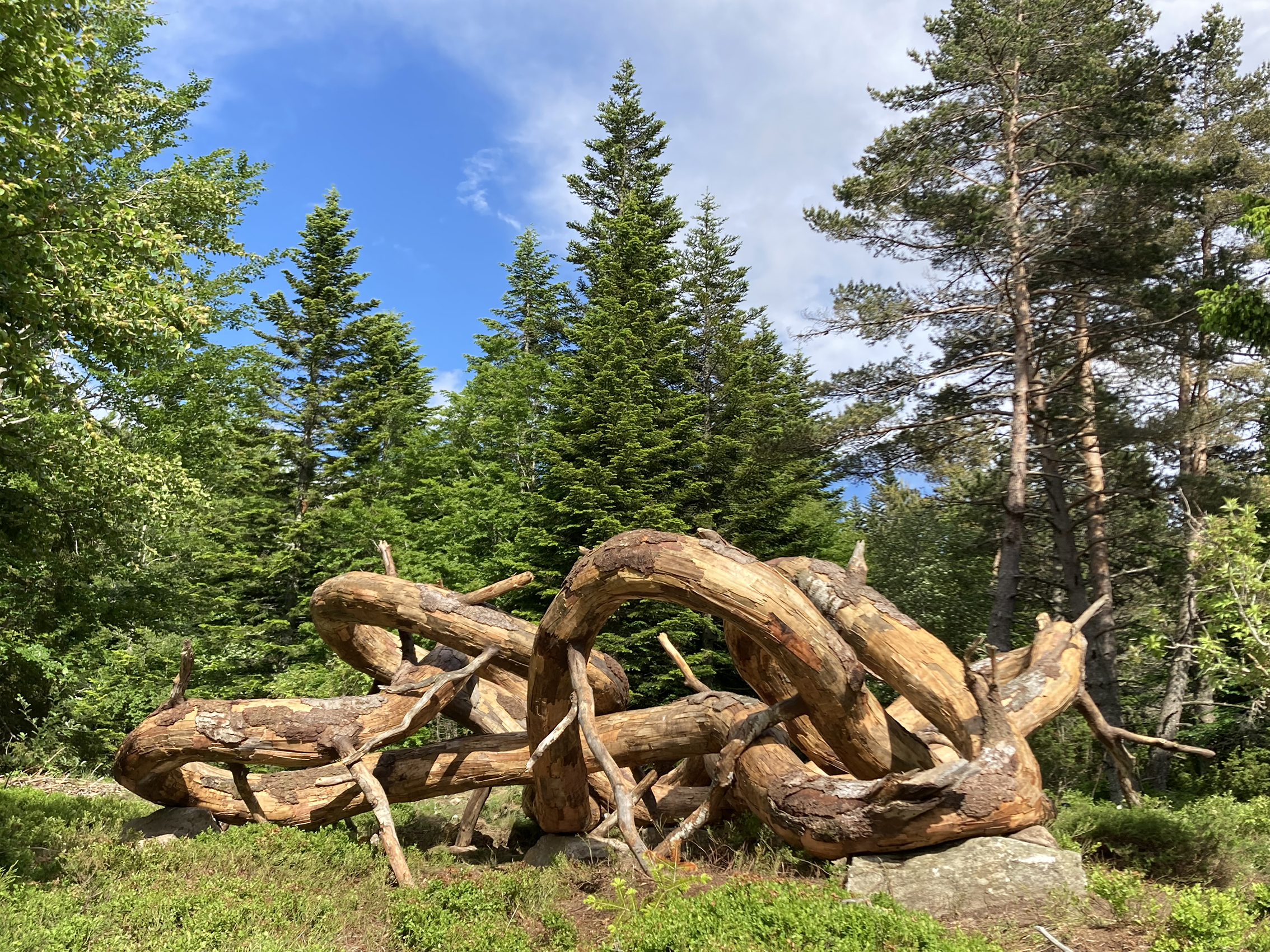 Nouvelle œuvre du sentier du Partage des eaux au cœur de la tourbière de la Verrerie. L’art d’Henrique Oliveira convoque à la fois le bâti et le végétal à travers des sculptures où l’inattendu génère un univers teinté de fantastique. Venez la découvrir.