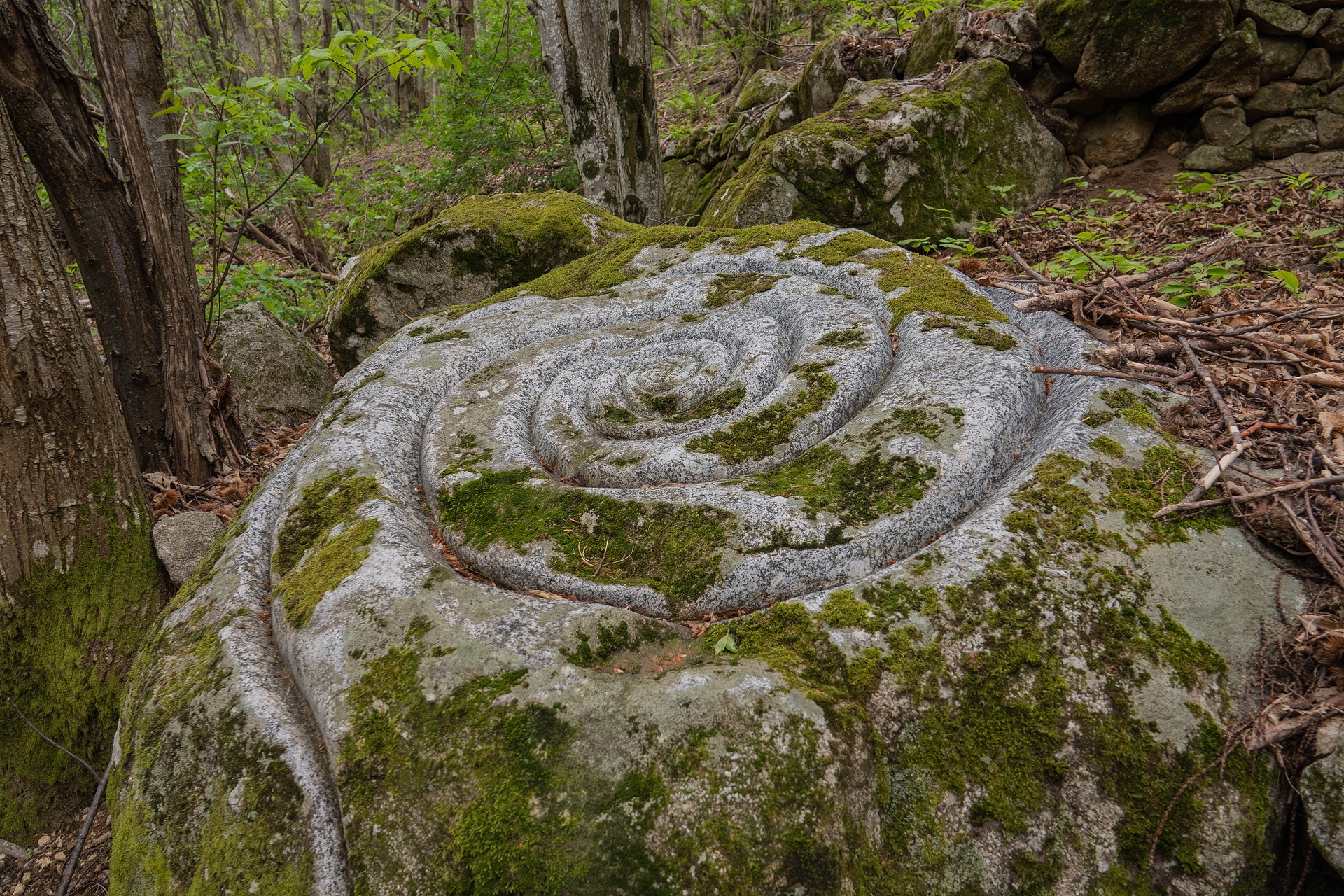Le projet Vortex sur pierres sculptées in situ, représente les saisons, la grande roue du temps à l’image des charrettes qui creusent les ornières des chemins qui nous font avancer et aussi nous perdent vers nos ancêtres oubliés.