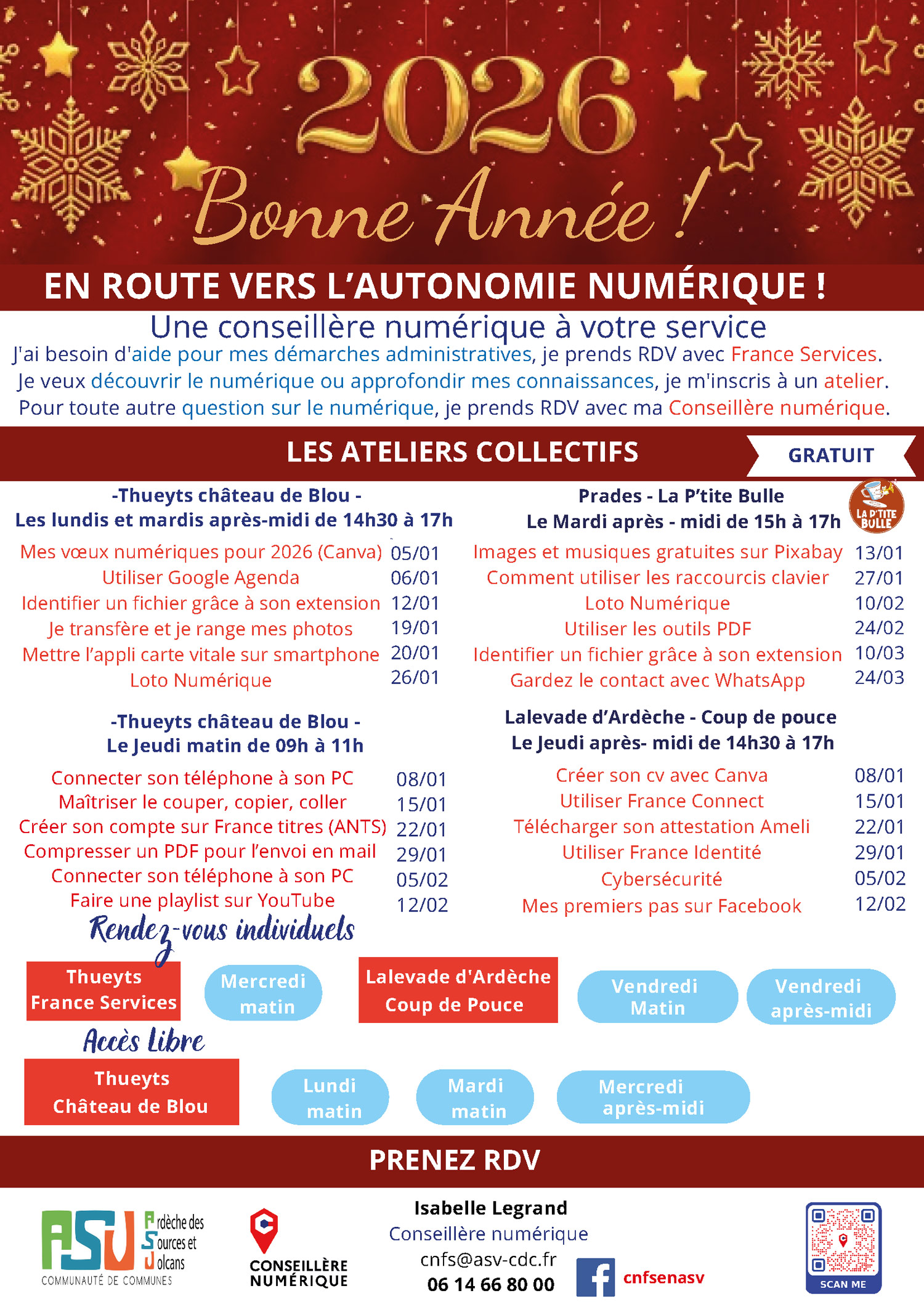 Pour découvrir le numérique, approfondir vos connaissances ou pour toutes autres questions sur le numérique, n’hésitez pas à contacter Isabelle notre conseillère numérique.