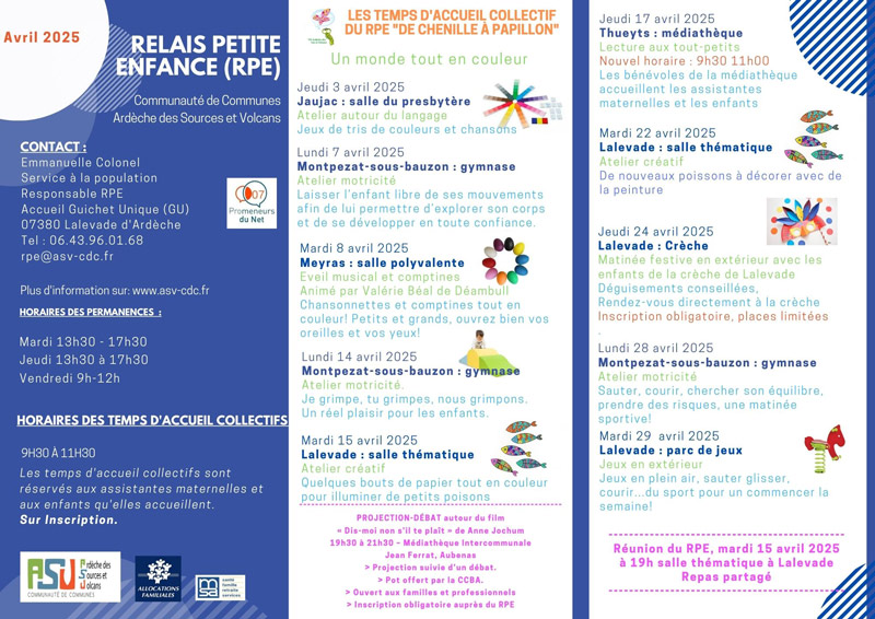 Le programme du Relais Petite Enfance (RPE) du mois d’avril est là !