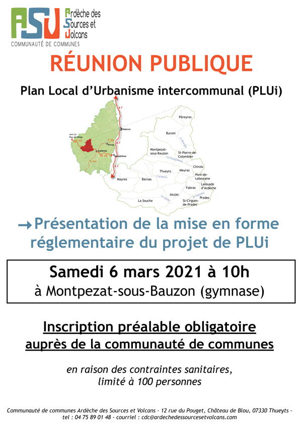 réunion publique le samedi 6 mars 2021 à 10h à Montpezat-sous-Bauzon (gymnase)