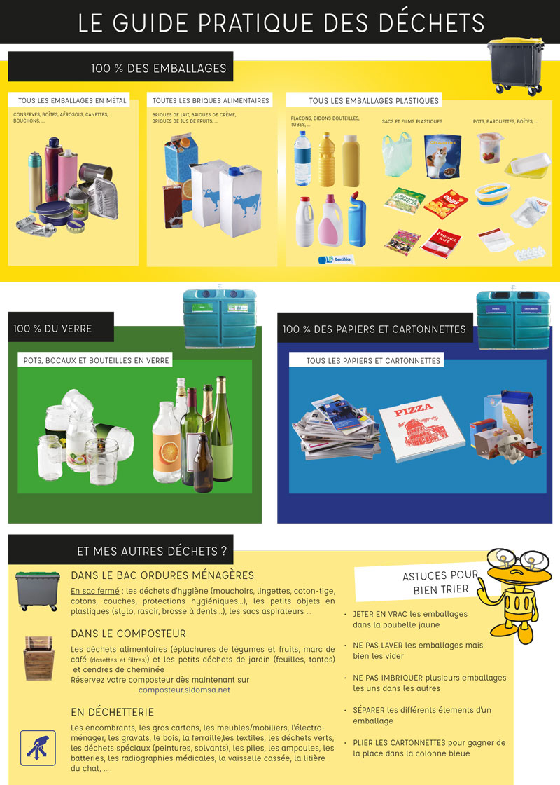 Trier ses déchets est un acte primordial pour la préservation de l’environnement. C’est aussi un acte économique, car hors coût de collecte, le coût de traitement d’1 tonne d’Ordure Ménagère est d’environ 200 € (y compris service déchetterie), alors que le coût de traitement d’1 tonne de déchets en tri sélectif est de 0 €, grâce aux filières de recyclage.