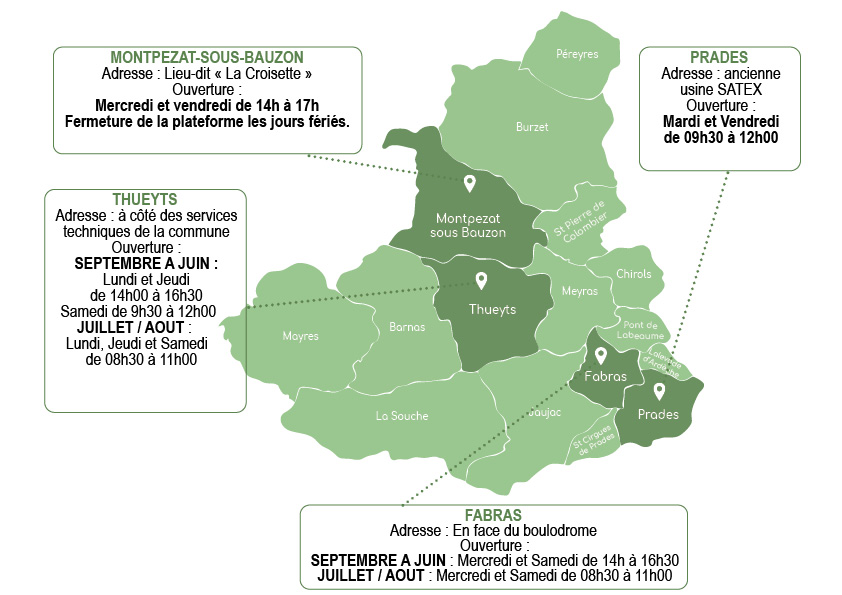 - Les végétaux sont broyés directement sur la plateforme à Fabras. Le broyat résultant est mis gratuitement à disposition des usagers. Vous pourrez ainsi réaliser chez vous du paillage, du compostage, du recouvrement de massif floral…