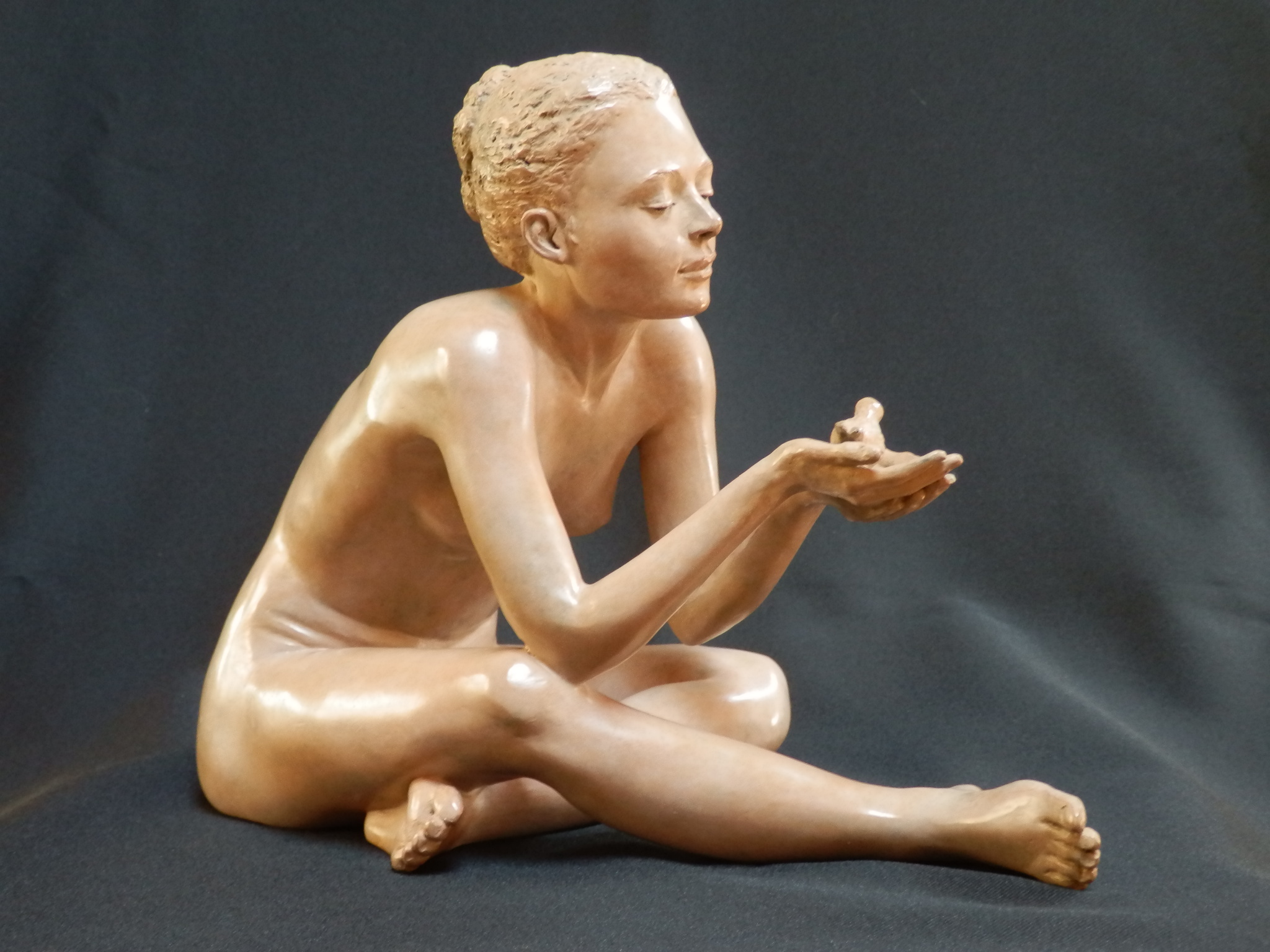 Souvent mes œuvres en terre cuite patinée sont transformées en bronze en fonderie ou j’accompagne les différentes stades de la réalisation des pièces. Je privilégie souvent les patines claires car elles se rapprochent de la terre cuite que j’aime tant. Mes bronzes, pour moi, sont une nouvelle naissance de mes œuvres, un autre toucher, une certaine noblesse et pérennité.