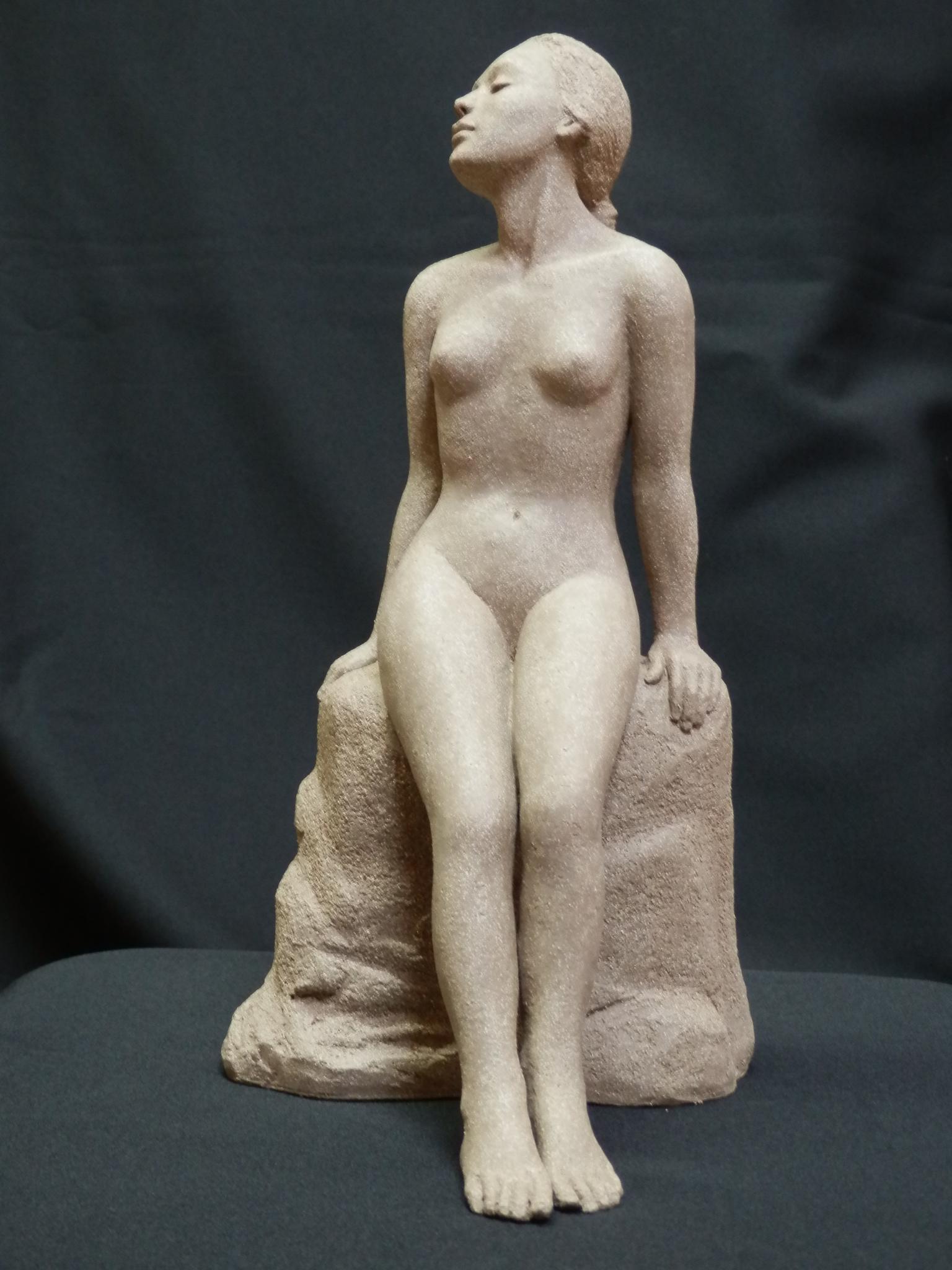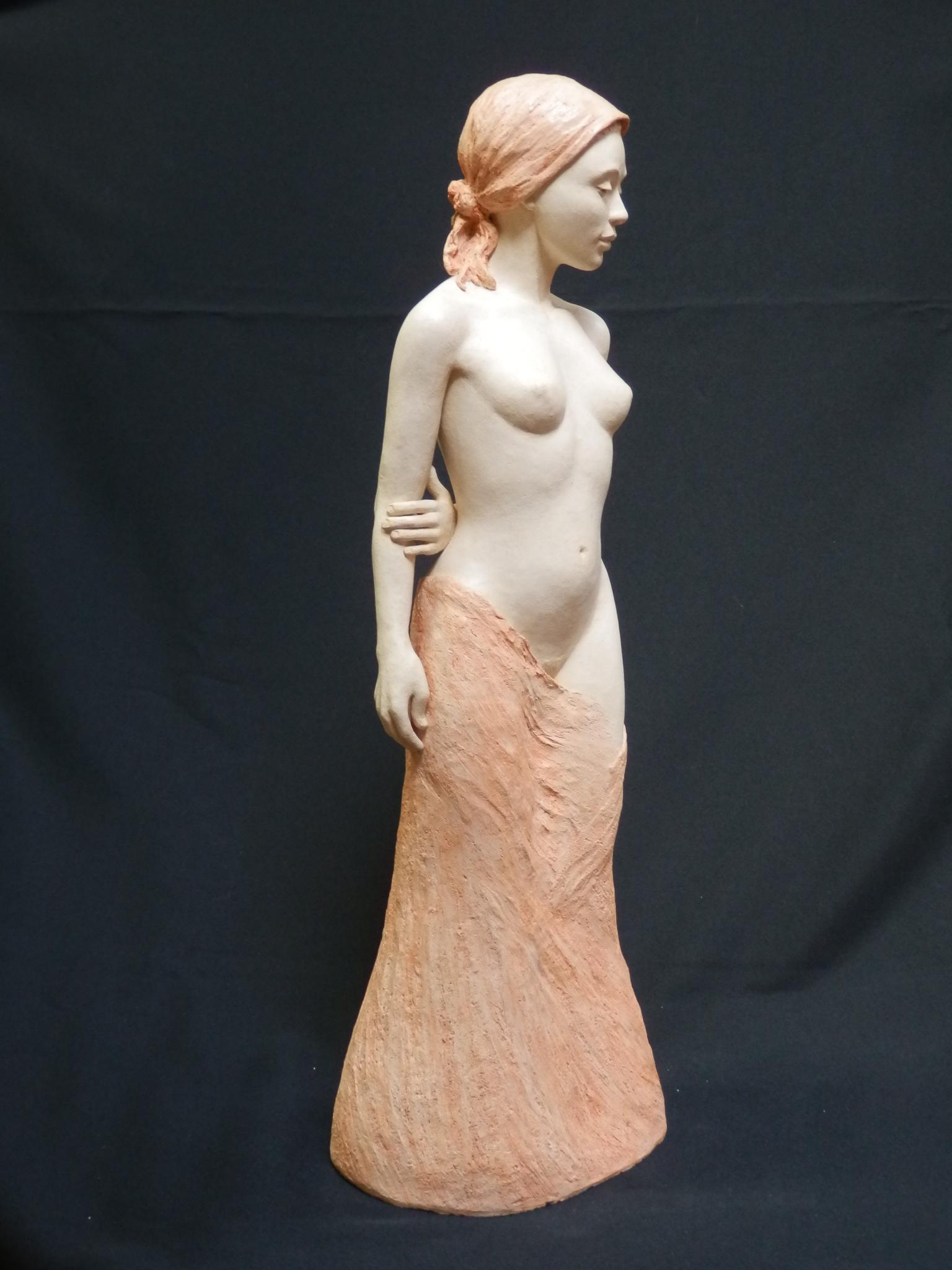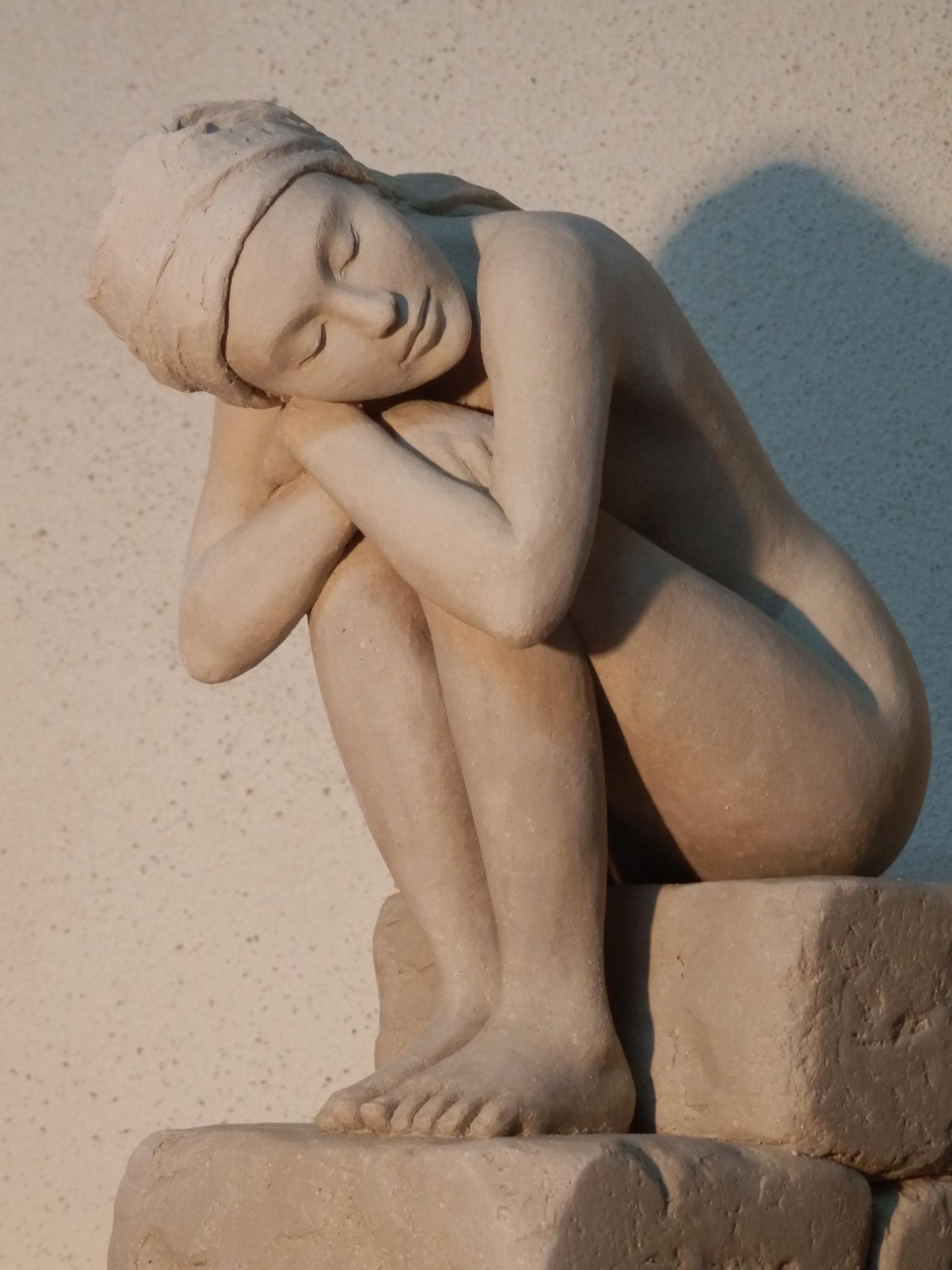Chaque sculpture est une présence unique avec sa densité et son émotion. Tout est dans le ressenti, un regard, un geste qui “parle”…simple, dénué d’artifice…une présence palpable.