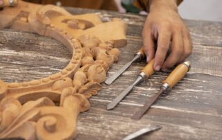 Georges Bugnon réalise des pièces tournées et sculptées sur différentes essences de bois locales : châtaignier, sorbier…