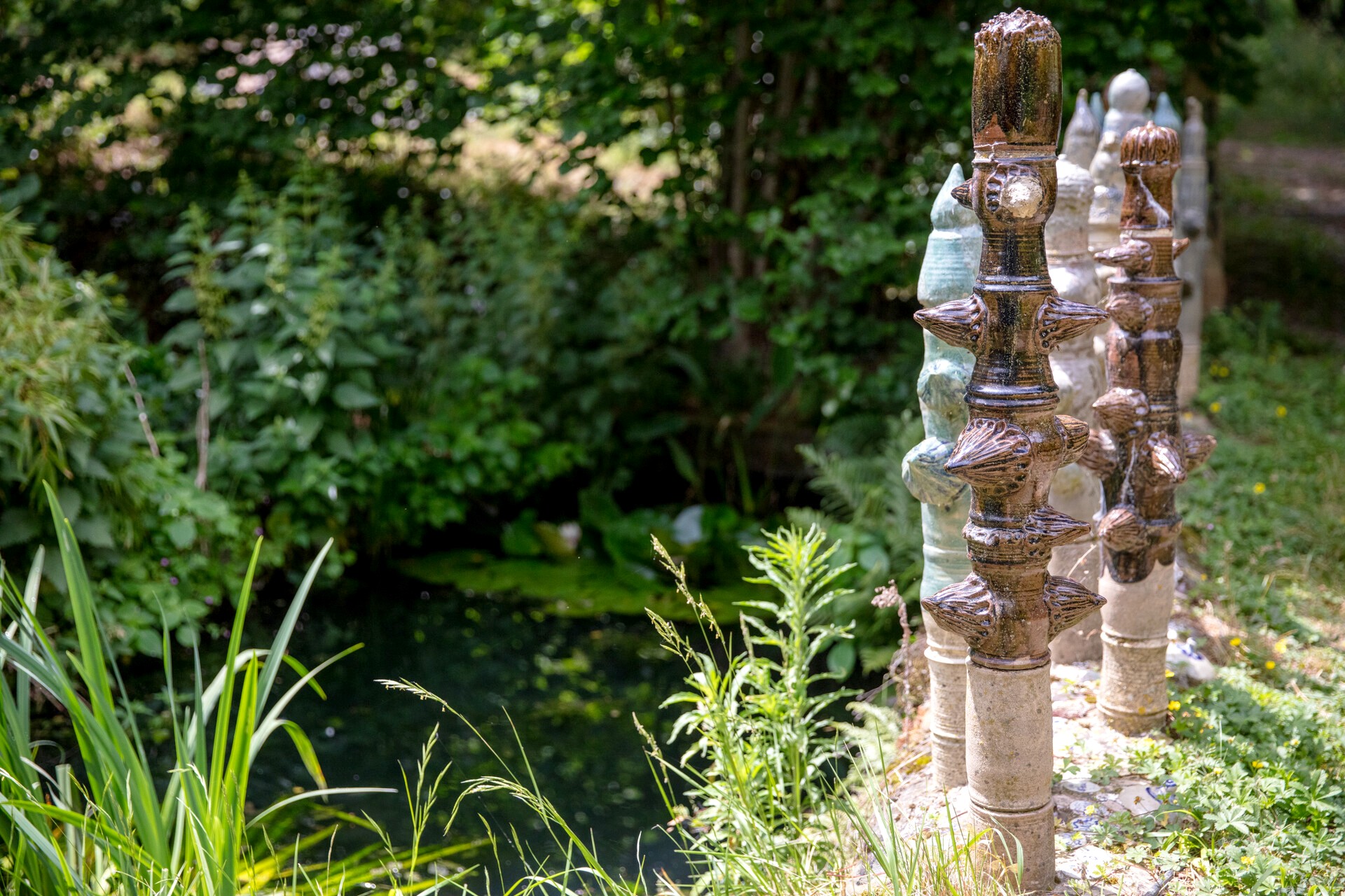 Pour Martine Diersé, la sculpture – essentiellement céramique et bois – n’est pas faite pour être posée sur un socle mais pour être intimement mêlée au végétal dans des jardins qu’elle compose, s’inscrire dans des paysages bruts ou aménagés, dans des architectures traditionnelles ou contemporaines.