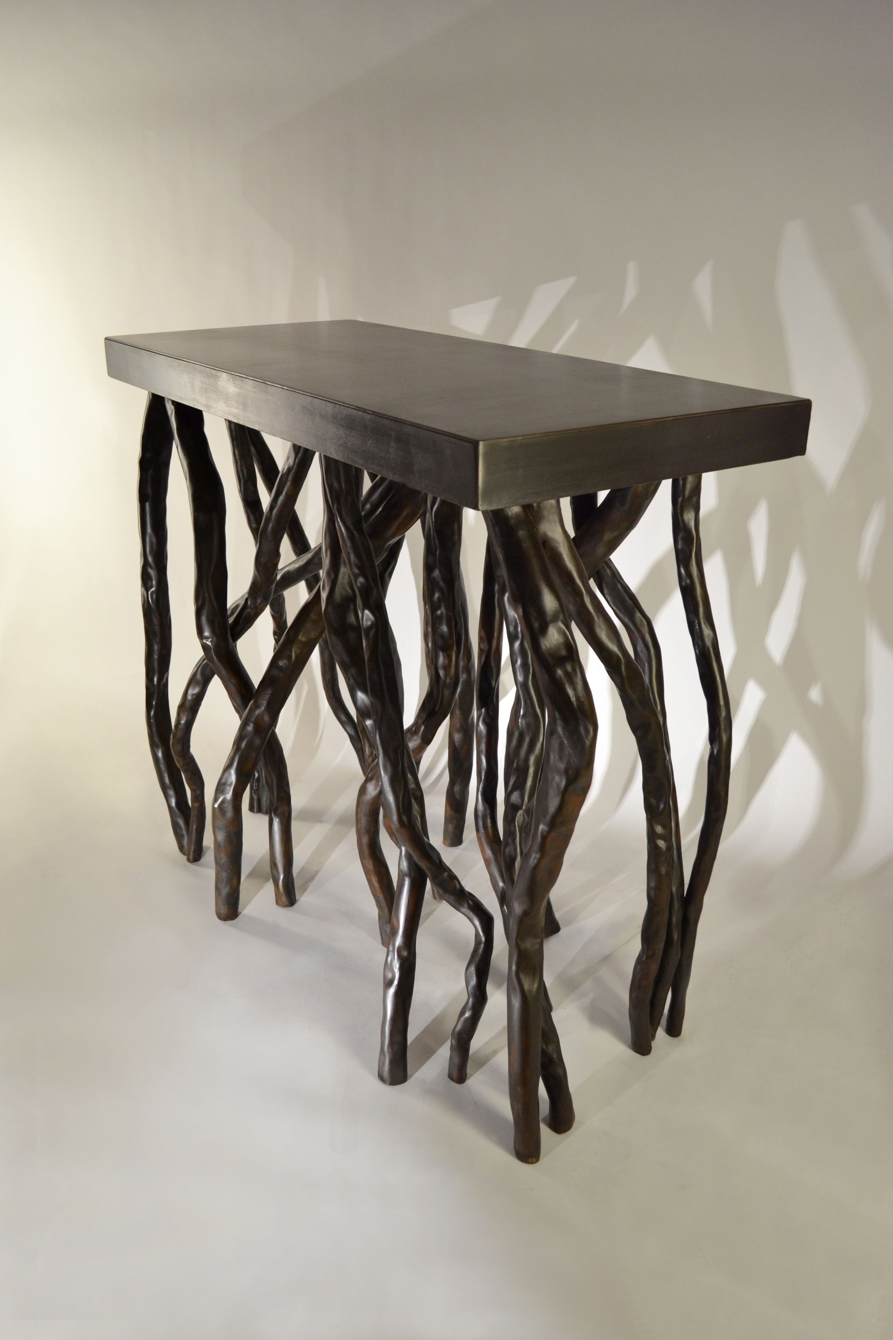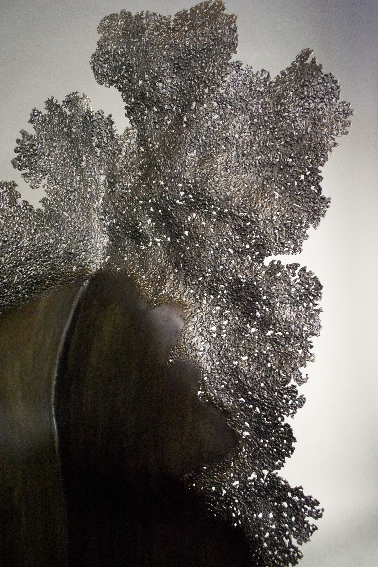 Mon matériau, l’acier, est choisi pour renforcer mon propos. C’est par le métal que l’homme a dominé la nature, c’est avec lui que je cherche la réconciliation. Pour y arriver, je m’engage physiquement pour rendre à cette matière industrielle une forme organique et minérale.
