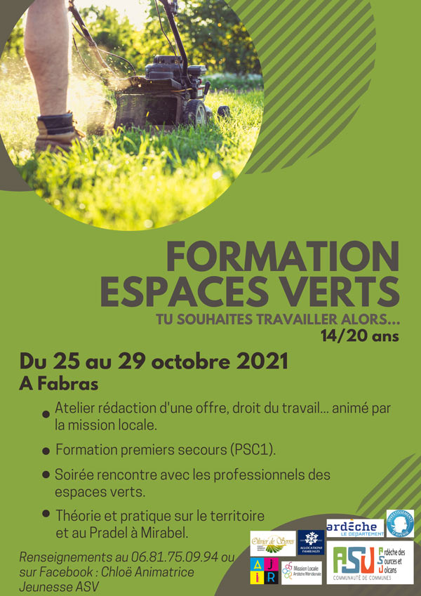 - Formation espace vert, en partenariat avec le CFPPA Olivier de Serre, entièrement gratuite, nouveauté 2021