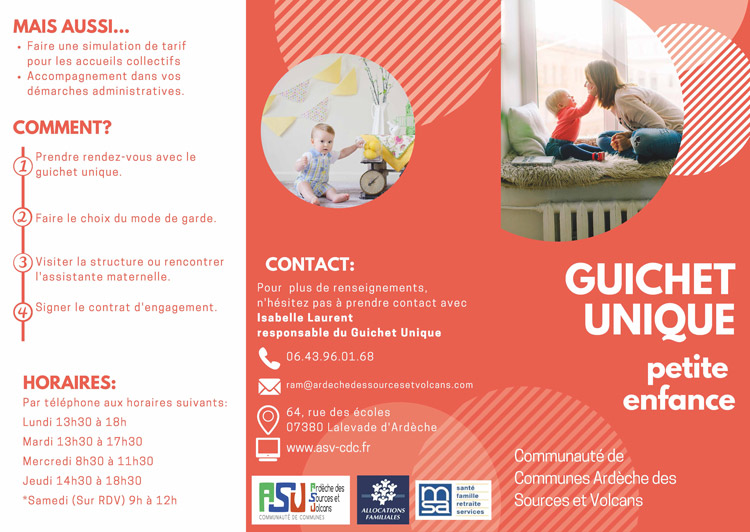 Le guichet unique est un lieu ouvert à toutes les familles à la recherche d’un mode de garde. Il a pour vocation d’informer les parents sur les caractéristiques des différents modes d’accueil existants sur le territoire et de simplifier les démarches d’inscription en centralisant tout dans un même lieu.