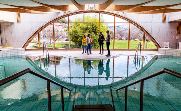 A l’invitation des Thermes de Neyrac, une partie de l’équipe de l’Office de Tourisme a pu découvrir les dernières installations proposées pour la saison thermale 2022, accueillis par M. Rennou, directeur des thermes de Neyrac et Vals et d’Emilie Bertrand, chargée de communication pour les Thermes.
